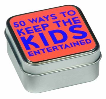 50 Ways to Keep the Kids Entertained by Lagoon, turns little monsters into well-behaved cherubs with ingenious ways to keep the kids amused and even quiet! No toys, batteries or bribery required! There is much fun to be had in this take anywhere tin.