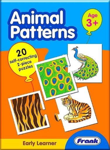 Animal Patterns puzzle set is a variation to the average matching games where the children have to identify and match the animal from the given pattern of their skin. Each puzzle set has the animal skin pattern as the left piece and the complete animal as the right piece. The puzzle pieces are self correcting (can only fit together the correct way) hence ensuring that the concept is learnt correctly right from the start.