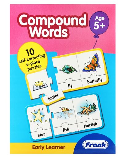 Frank's Compound Words puzzle sets are brightly illustrated and introduce children to words, which when combined together form new words. These fun puzzles help to increase the vocabulary of the child. The puzzle pieces are self correcting (can only fit together the correct way) hence ensuring that the concept is learnt correctly right from the start. The additional feature of 'play plus' offers fresh and innovative ideas for further practice through fun-filled activities.