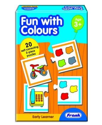 In the Fun With Colours puzzle set, whilst reinforcing visual discrimination skills, children learn to recognize, distinguish and combine colours. These educational 2-piece puzzles are also self correcting (can only fit together the correct way) hence ensuring that the concept is learnt correctly right from the start. The additional feature of 'play plus' offers fresh and innovative ideas for further practice through fun-filled games.