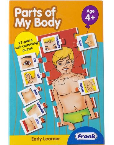 Parts of My Body is a fun and challening puzzle to identify and name the various parts of the body. By assembling the pieces, children come to know their correct positions therby learning by association. The puzzle pieces are also self correcting (can only fit together the correct way) hence ensuring that the concept is learnt correctly right from the start.