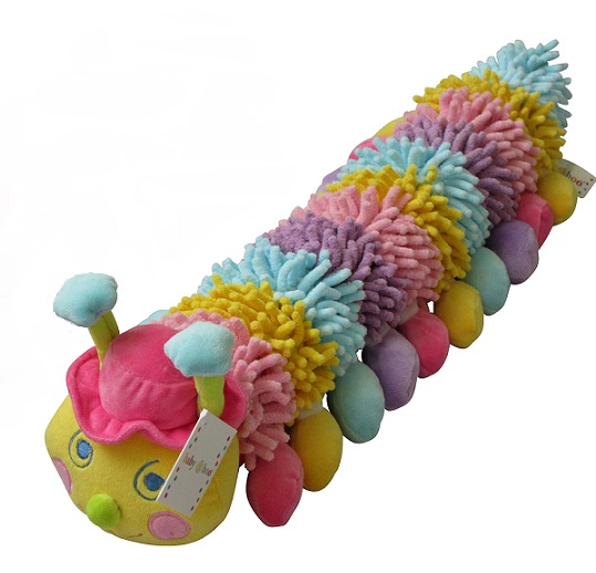 Babyboo caterpillars are great as a decorative item for your child's room. They are so tactile that your child will love to cuddle up with them and are the perfect size for a toddler to tuck under their arm and take where-ever they go. Each friendly caterpillar has colourful antennas, a big smile, embroidered eyes, appliqued rosy cheeks and a pom-pom nose.
