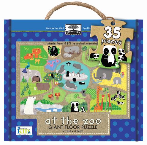 When the puzzle is completed, they can use the key on the back of the box for some seek-and-find fun to find all the animals at the zoo! This 35-piece puzzle is made of thick recycled materials and printed with eco-friendly inks.