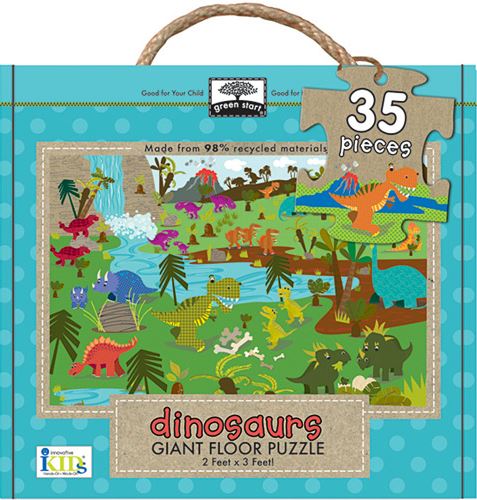 When the puzzle is completed, the kids can use the key on the back of the box for some seek-and-find fun, as they hunt for each dinosaur they will learn the names of these prehistoric creatures. This 35-piece giant floor puzzle is made of thick recycled materials and printed with eco-friendly inks.