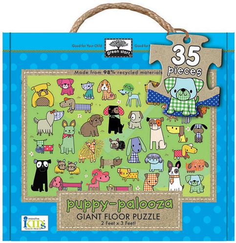 Carefully designed to support and enhance early learning skills, this beautiful Puppy Palooza Floor puzzle by Innovative Kids creates a play experience embedded with educational benefits that build early literacy, math, and problem-solving skills. Kids will love building this giant floor puzzle to see all of the different dogs. This 35-piece puzzle is made of thick recycled materials and printed with eco-friendly inks.