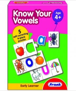 This puzzle set helps children learn the sounds of the five vowels and identify words beginning with these letters. Each puzzle sets consists of a vowel piece where the vowel has to be inserted, and two objects beginning with the vowel. The puzzle pieces are self correcting (can only fit together the correct way) hence ensuring that the concept is learnt correctly right from the start.