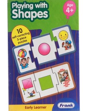 Playing with Shapes is a cleverly designed 3-piece puzzle that helps children learn the difference between various shapes and then encourages the child to recognize different forms of a shape within an object that is familiar to them.The puzzle pieces are self correcting (can only fit together the correct way) hence ensuring that the concept is learnt correctly right from the start. The additional feature of 'play plus' offers ideas for further fun activities and games to encourage more practice and development of shape identification.