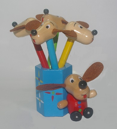 Pencils will never be the same again! This fun wooden Derby the Dog set has four colour pencils - red, blue, yellow and green. They are fantastic for toddlers, children preschool age and older and may assist the development of fine motor skills for children with dexterity challenges. Watch them grow in confidence and independence whilst learning through colourful play.