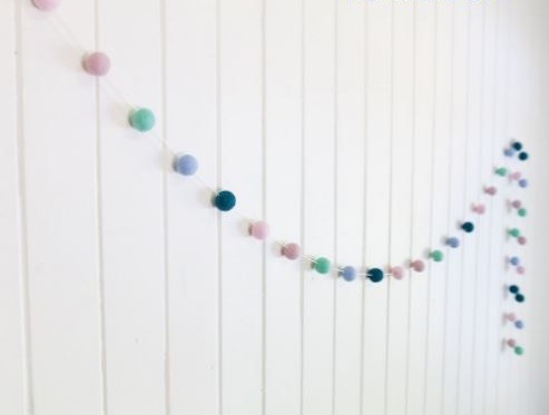 This beautiful garland with Mermaid coloured balls has been handmade in Nepal under ethical fairtrading and conditions, using 100% NZ wool. They are hand-dyed, hand-felted, and stitched with love, in the most beautiful shades. They can be draped over a bed-head, across a mantel, over your window or as bedroom decoration, or be placed just about anywhere!