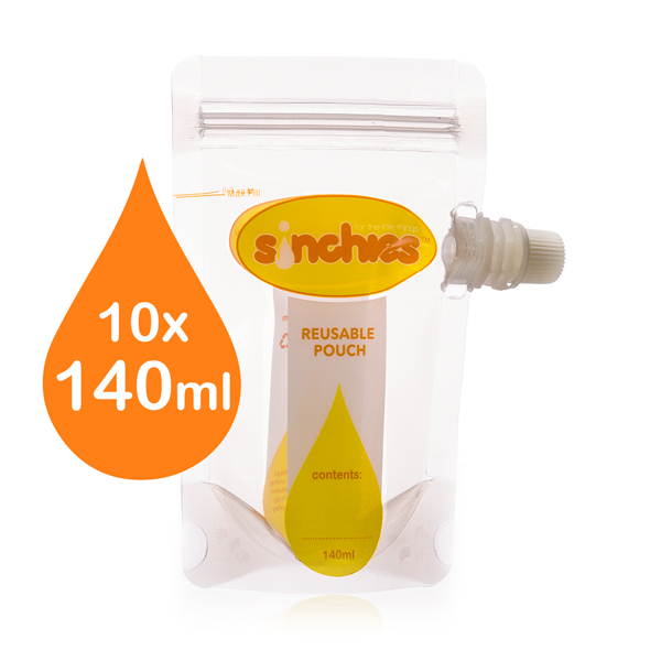 Sinchies 140ml reusable pouches are similar in size to the baby food pouches and fruit squeezies available in the supermarket but the difference is you only need to use these pouches once or twice to start saving big on grocery bills. These highly reusable, easy to use and affordable baby food pouches mean no bowl or spoon required! Your child can enjoy feeding themselves with a no fuss spout they can suck from or squeeze, saving you money and mess.