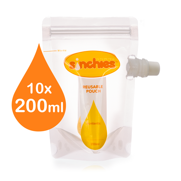 Sinchies - 200mL Reusable Pouches - 10 Pack - with a 1L pouch to use for pouring in the filling.