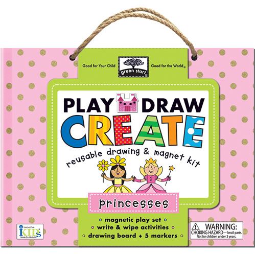 Create an enchanted world or make up your own princess adventures! Play, draw, create with this reusable, magnetic, write-on/wipe-off kit. This tote-along package is great for at home or on-the-go fun and learning!