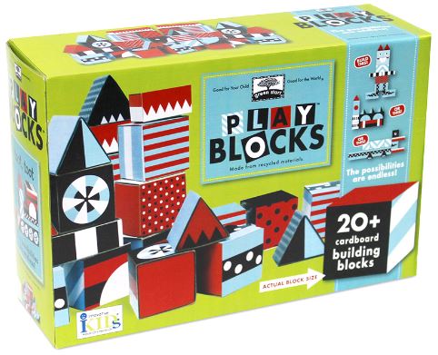 Green Start Play Blocks by Innovative Kids - Stack them up, knock them down, mix and match them all around! These oversized cardboard building blocks come flat, ready to fold, with easy-to-build instructions to create a huge, interchangeable, buildable play set! With all the strength and durability of traditional blocks sets—but made entirely from Earth-friendly, recycled materials—they are good for your child and good for the world!