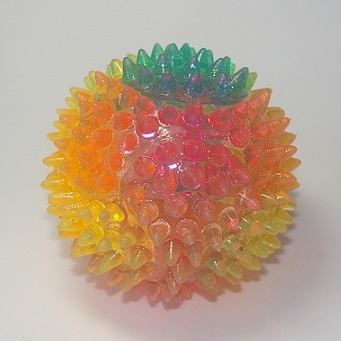 This colourful Rainbow Spiky Light Up Flashing Ball is a great deal of fun! When you bounce it, it lights up and flashes rainbows of colour. The spikes make this ball very tactile and is also firm enough to be squeezed and used for stress relief. It is also a great deal of fun when throwing and bouncing it around with friends.