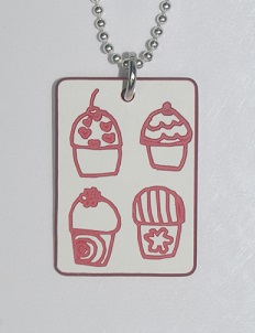 This hardened plastic Cupcakes Pendant is designed for those who love their yummy cupcakes. This pendant is 26mm x 36mm (slight deviations to these measurements may occur due each tag being individually handcrafted).