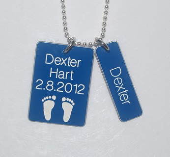 You may choose from three different engraving fonts for the pendants. You may dedicate the back side of the tags for furhter details of the beautiful child, like their weight and time of birth or a perhaps the meaning of their name. The childs pendant has their date of birth engraved on the back. Please remember the more letters used, the smaller the font will need to be engraved. Please enter all the details you wish to have on your tags in the 'Customer Notes' section during the completion of your purchase.