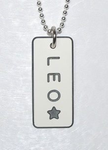 You may choose from three different engraving fonts for the name and you may also dedicate the back side of the tag for a personalised message, like who the pendant is from and/or a date if you wish. Just remember the more letters you add to your word choice, the smaller the font will need to be engraved. Please enter all the details you wish to have on your tag in the 'Customer Notes' section during the completion of your purchase.