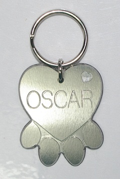 This stainless steel Paw ID Tag is designed with the pad of the paw to be heart shaped. This tag is 30mm x 37mm (slight deviations to these measurements may occur due each tag being individually handcrafted) with a 22mm split ring.