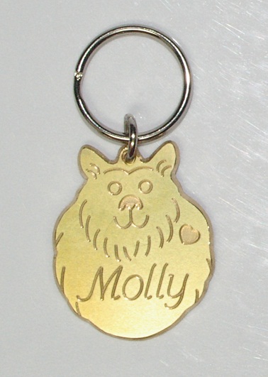 This brass Fluffy Dog ID Tag is designed for those who love their long haired dogs. This tag is 28mm x 34mm (slight deviations to these measurements may occur due each tag being individually handcrafted) with a 22mm split ring.