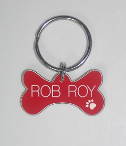 This hardened plastic Bone Dog ID Tag is designed for those who have dogs that love nothing more than to chew on a bone. This tag is 37mm x 21mm (slight deviations to these measurements may occur due each tag being individually handcrafted) with a 22mm split ring.