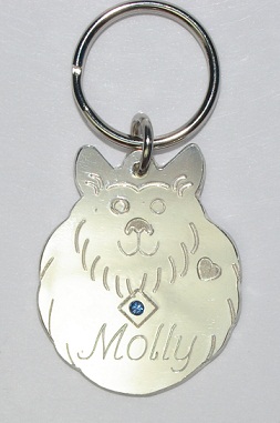 This sterling silver Fluffy Dog ID Tag is designed for those who love their long haired dogs. To make this tag even more special it is set with a 0.05ct (2mm) round Blue Sapphire. This blue sapphire (Ceylon blue in colour) is of high quality as your dog only deserves the best. This tag is 28mm x 34mm x 1.6mm (slight deviations to these measurements may occur due each tag being individually handcrafted) with a 22mm split ring. Tarnish resistant sterling silver is used to make the tag, so it takes a longer time to become tarnished.