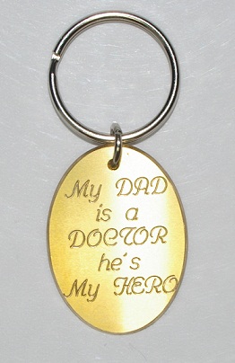 This brass "My Dad is a Doctor he's my Hero" Keyring is designed for those great dads who are doctors. This tag is 25mm x 35mm (slight deviations to these measurements may occur due each tag being individually handcrafted) with a 25mm steel split ring.