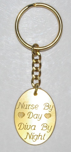 This brass "Nurse by Day Diva by Night" key chain is designed for those wonderful nurses who work hard and then enjoy their time off. This tag is 25mm x 35mm (slight deviations to these measurements may occur due each tag being individually handcrafted) with 30mm of chain and a 30mm split ring.