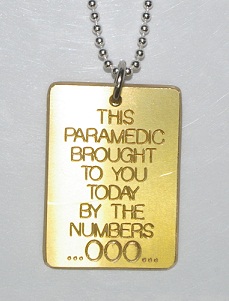 You may choose from three different engraving fonts for "This Paramedics Brought to you Today by the Numbers 000" and you may also dedicate the back side of the pendant for a personalised message, like who the pendant is from and a date if you wish. Just remember the more letters used in your message, the smaller the font will need to be engraved. Please enter all the details you wish to have on your tag in the 'Customer Notes' section during the completion of your purchase.