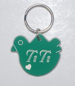 This hardened plastic Bird Design Cat ID Tag is designed for those who have a cat that love to watch birds and try to play with them. This tag is 35mm x 30mm (slight deviations to these measurements may occur due each tag being individually handcrafted) with a 22mm split ring.