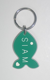 This hardened plastic Fish ID Tag is designed for those who have a cat that loves fish, whether it be to watch them or to eat them. This tag is 26mm x 36mm (slight deviations to these measurements may occur due each tag being individually handcrafted) with a 22mm split ring.