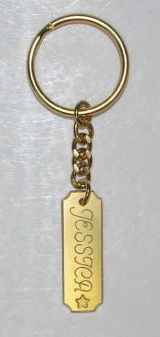 Brass Rectangular Name Tag with Scalloped Corners Key Chain
